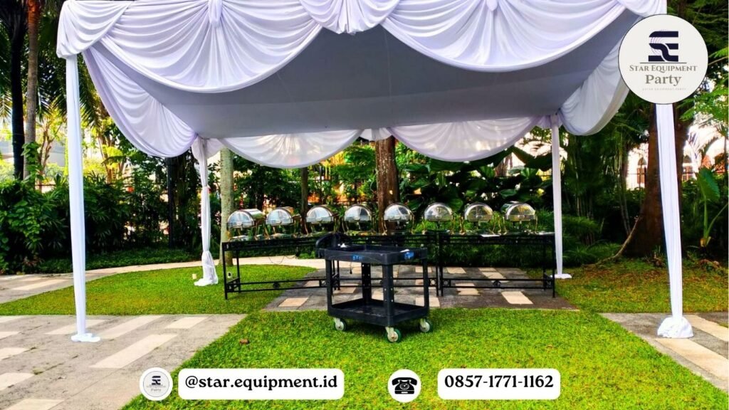 STAREQUIPMENT pusat sewa tenda plafon Pasar Minggu Jakarta Selatan – Tenda adalah salah satu hal yang tidak boleh ketinggalan saat mengadakan acara di Jakarta Selatan, terutama di Pasar Minggu. Karena apa? Karena tenda dapat menjadi bagian penting dari acara untuk membuatnya lebih rapi, nyaman, dan elegan. Tenda plafon selalu menjadi pilihan favorit di antara berbagai jenis tenda. Modelnya yang indah dan rapi dan cocok dengan dekorasi apa pun membuat tenda plafon terasa pas untuk segala suasana.